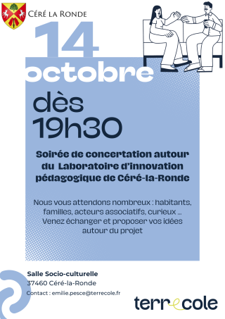 Rendez-vous le lundi 14 octobre à la salle socio culturelle de Céré-la-Ronde à 19h30 pour échanger avec notre équipe : familles, enseignants, acteurs associatifs, habitants … Vous êtes tous les bienvenus !