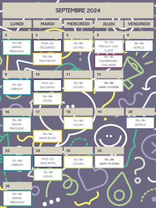 Voici le calendrier du LAPS (Lieu d'Accueil Parents Sud Touraine) de Loches Sud Touraine pour le mois de septembre !