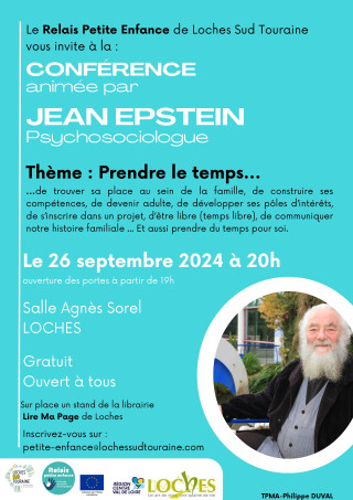 Le relai petite enfance de la communauté de communes Loches Sud Touraine organise une conférence le 26 septembre à Loches avec Jean Epstein, psychosociologue, sur le thème "Prendre le temps ..."
