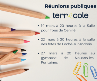 Les mairies de l’ancien canton de Montrésor et de Céré-la-Ronde avec l’équipe du projet Terrecole vous proposent de vous retrouver lors de trois réunions publiques qui auront lieu :