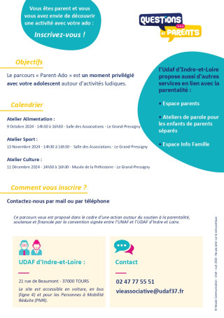 L'Union Nationale des Associations Familiales d'Indre-et-Loire organise plusieurs ateliers parents-ados.