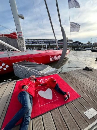Avant de rentrer dans son pays, le Bénin, il est allé rencontrer Samantha Davies et il a assisté au départ du Vendée Globe le dimanche 10 novembre. Il nous a envoyé des photos pour nous faire partager ce grand moment.