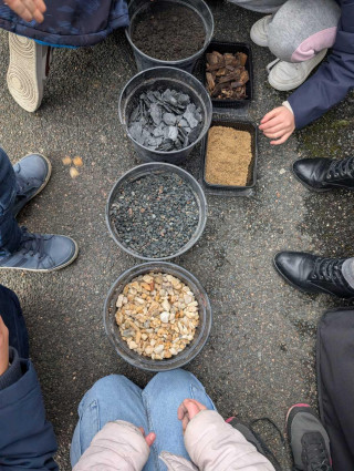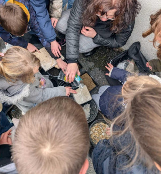 Découvrir les matériaux, faire le lien avec leur environnement et les incidences de la météo sur un espace extérieur : quel matériau absorbe le plus l’eau ? Quels sont les avantages et les inconvénients ?