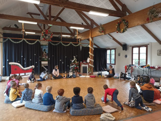 Dernier cercle conteur avec Anne Karen de Tournemire vendredi 20 décembre, à la salle des fêtes de Loché-sur-Indrois. Les CP de Loché-sur-Indrois ont été rejoints par les GS/CP de Nouans-les-Fontaines .