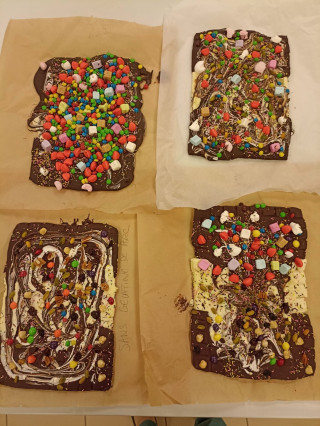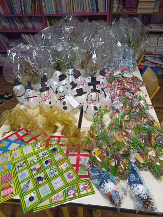 Ateliers de Noël avec l'aide précieuse de parents disponibles que nous remercions chaleureusement, les deux classes de CP et de CE1 - CE2 se sont réunies jeudi 19 décembre après midi pour se répartir sur différents ateliers au choix. Au programme : réalisation d'un bougeoir, d'un photophore, d'un bonhomme de neige culbuto, d'un jeu de DAO, ou participation à un atelier pâtisserie pour préparer du pain d'épices, des biscuits de Noël, des orangettes ou des plaques de chocolat fantaisie.